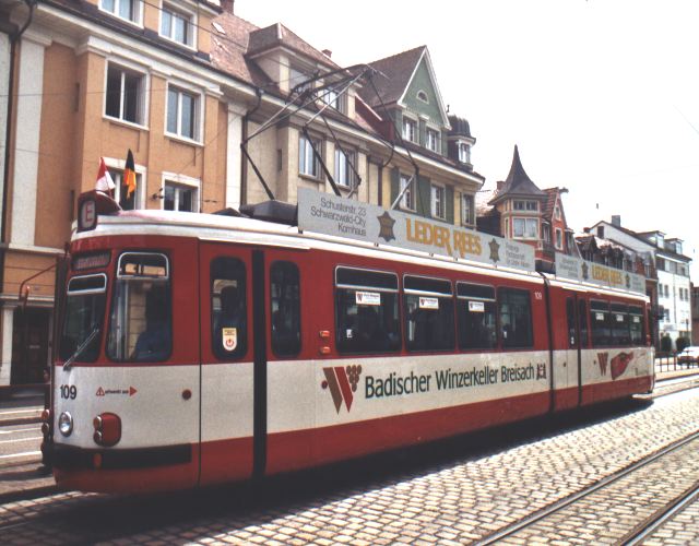 GT4 109 stands at Reutebachgaße terminus on Sunday 7.5.2000. The preserved car was working a tour for Tram Museum Zürich.