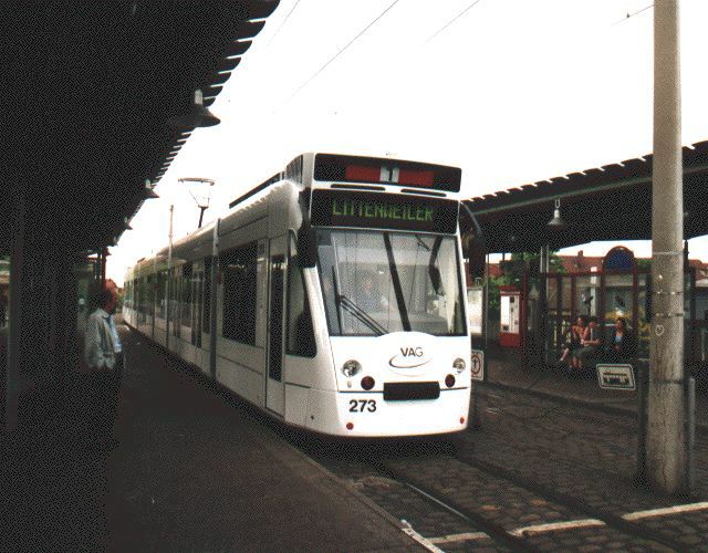 On one of it's first days in public service, and with advertising yet to be applied, an all white Combino 273 stands at Hauptbahnhof.